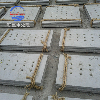 混凝土预制滤板采用立式钢模浇制,水灰比,细石、石英砂等材料配制,本产品严格执行国家有关标准,按设计要求计算开孔比,预埋ABS工程塑料预埋套管、配双层双向优质螺纹钢筋。采用高标号水泥,标准细石和石英砂,经机械搅拌,捣实浇制而成。滤板上下两面每平方米水平误差±1mm。滤池中安装达到整池误差≤5mm的高精度,且四边整齐、无翘缺,完全满足滤池设计技术规范要求。